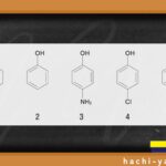 4か5で迷うが、ニトロ基が電子吸引性基なのでp-ニトロフェノールの共鳴数が一番多くなる。