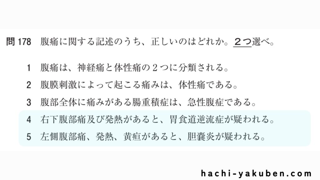 胆嚢炎は右側?左側?【薬剤師国家試験104回-問178】