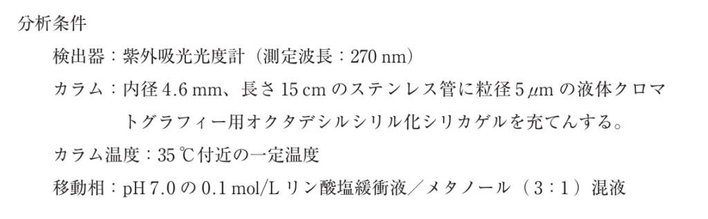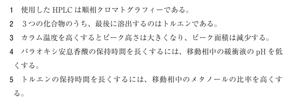 ⇒パラオキシ安息香酸は酸性物質である為、移動相のpHを低下させると脂溶性が上がりODSに吸着されやすくなる。