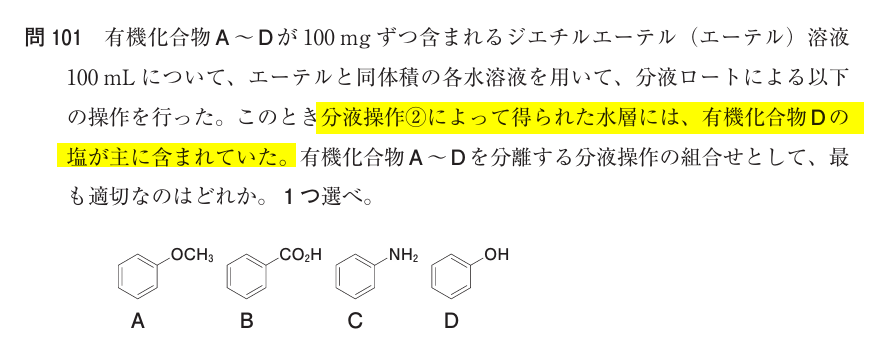 有機化合物の分離②【薬剤師国家試験100回問101】