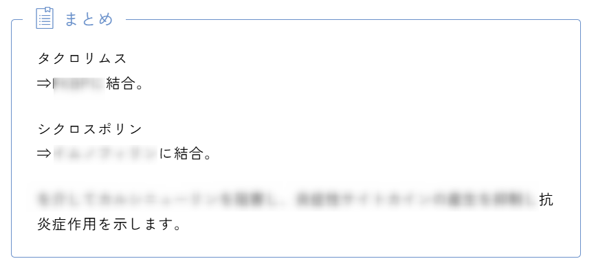 両方ともカルシニューリンを阻害するのは一緒で、阻害する過程が違うよ!
