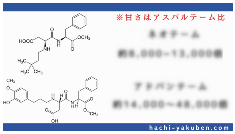 また、ネオテームやアドバンテームはアスパルテームを基に開発された人工甘味料でその甘味は
