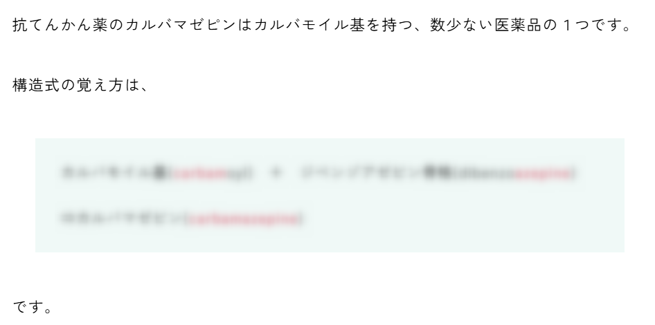 抗てんかん薬のカルバマゼピンはカルバモイル基を持つ、数少ない医薬品の1つです。